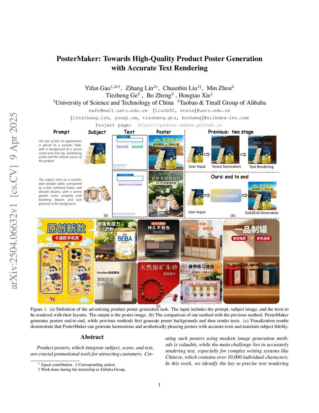 PosterMaker: Towards High-Quality Product Poster Generation with Accurate Text Rendering