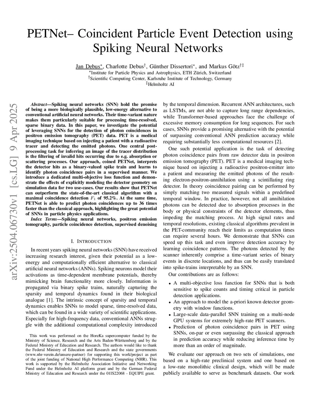 PETNet -- Coincident Particle Event Detection using Spiking Neural Networks