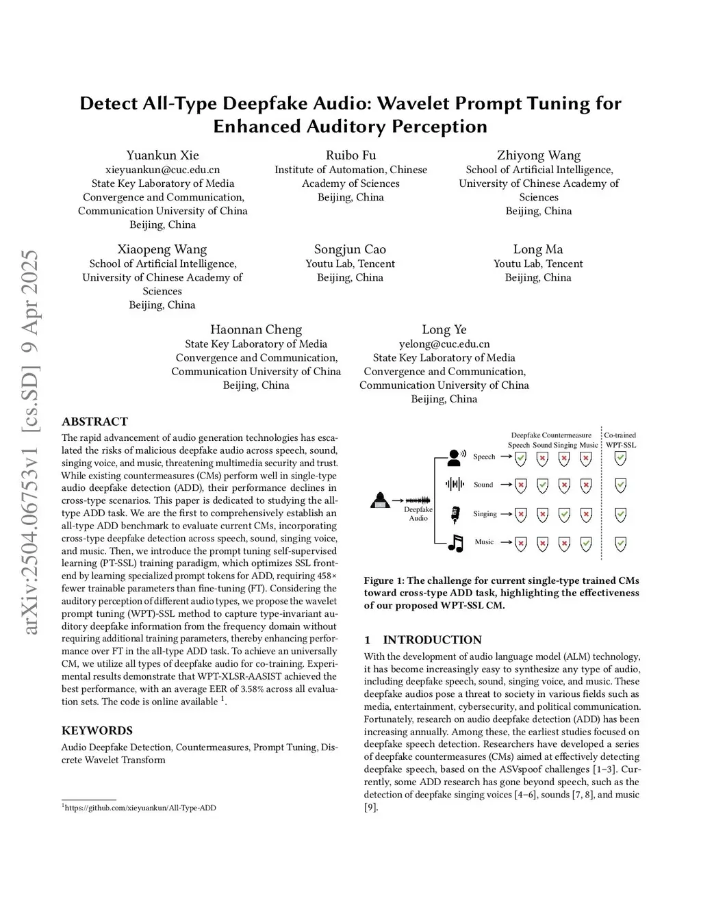 Detect All-Type Deepfake Audio: Wavelet Prompt Tuning for Enhanced Auditory Perception