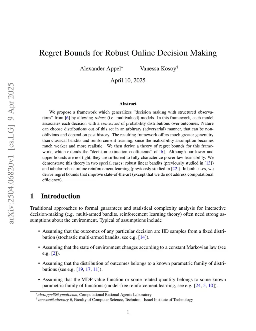 We propose a framework which generalizes "decision making with structured observations" by allowing robust (i.e. multivalued) models. In this framework, each model associates each decision with a convex set of probability distributions over outcomes. Nature can choose distributions out of this set in an arbitrary (adversarial) manner, that can be nonoblivious and depend on past history. The resulting framework offers much greater generality than classical bandits and reinforcement learning, since the realizability assumption becomes much weaker and more realistic. We then derive a theory of regret bounds for this framework. Although our lower and upper bounds are not tight, they are sufficient to fully characterize power-law learnability. We demonstrate this theory in two special cases: robust linear bandits and tabular robust online reinforcement learning. In both cases, we derive regret bounds that improve state-of-the-art (except that we do not address computational efficiency).