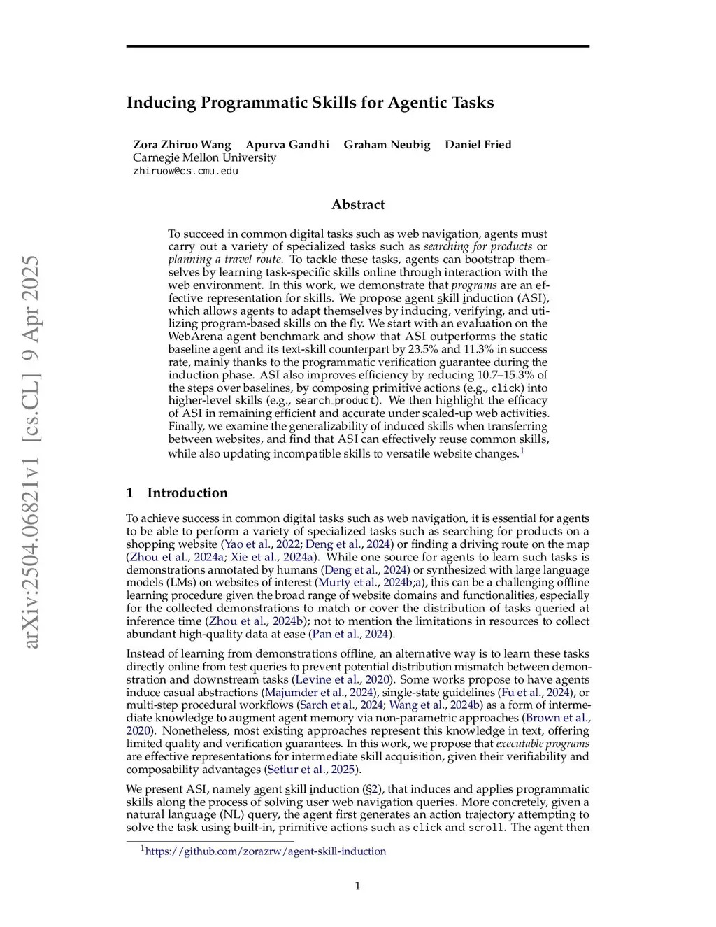 To succeed in common digital tasks such as web navigation, agents must carry out a variety of specialized tasks such as searching for products or planning a travel route. To tackle these tasks, agents can bootstrap themselves by learning task-specific skills online through interaction with the web environment. In this work, we demonstrate that programs are an effective representation for skills. We propose agent skill induction (ASI), which allows agents to adapt themselves by inducing, verifying, and utilizing program-based skills on the fly. We start with an evaluation on the WebArena agent benchmark and show that ASI outperforms the static baseline agent and its text-skill counterpart by 23.5% and 11.3% in success rate, mainly thanks to the programmatic verification guarantee during the induction phase. ASI also improves efficiency by reducing 10.7-15.3% of the steps over baselines, by composing primitive actions (e.g., click) into higher-level skills (e.g., search product). We then highlight the efficacy of ASI in remaining efficient and accurate under scaled-up web activities. Finally, we examine the generalizability of induced skills when transferring between websites, and find that ASI can effectively reuse common skills, while also updating incompatible skills to versatile website changes.