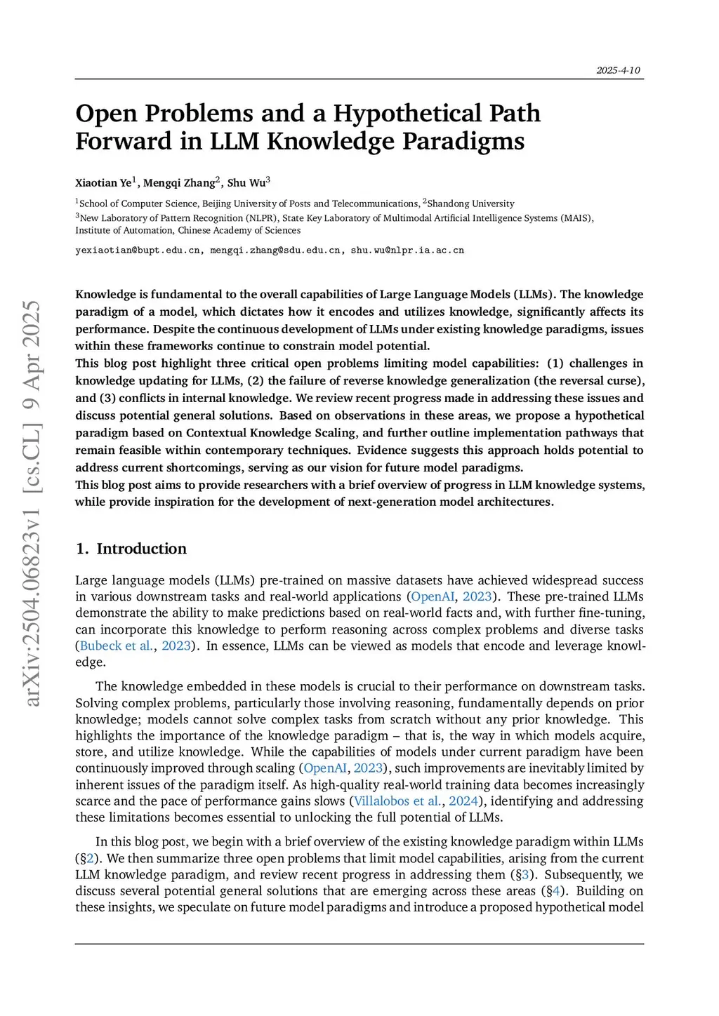 Knowledge is fundamental to the overall capabilities of Large Language Models (LLMs). The knowledge paradigm of a model, which dictates how it encodes and utilizes knowledge, significantly affects its performance. Despite the continuous development of LLMs under existing knowledge paradigms, issues within these frameworks continue to constrain model potential.This blog post highlight three critical open problems limiting model capabilities: (1) challenges in knowledge updating for LLMs, (2) the failure of reverse knowledge generalization (the reversal curse), and (3) conflicts in internal knowledge. We review recent progress made in addressing these issues and discuss potential general solutions. Based on observations in these areas, we propose a hypothetical paradigm based on Contextual Knowledge Scaling, and further outline implementation pathways that remain feasible within contemporary techniques. Evidence suggests this approach holds potential to address current shortcomings, serving as our vision for future model paradigms.This blog post aims to provide researchers with a brief overview of progress in LLM knowledge systems, while provide inspiration for the development of next-generation model architectures.