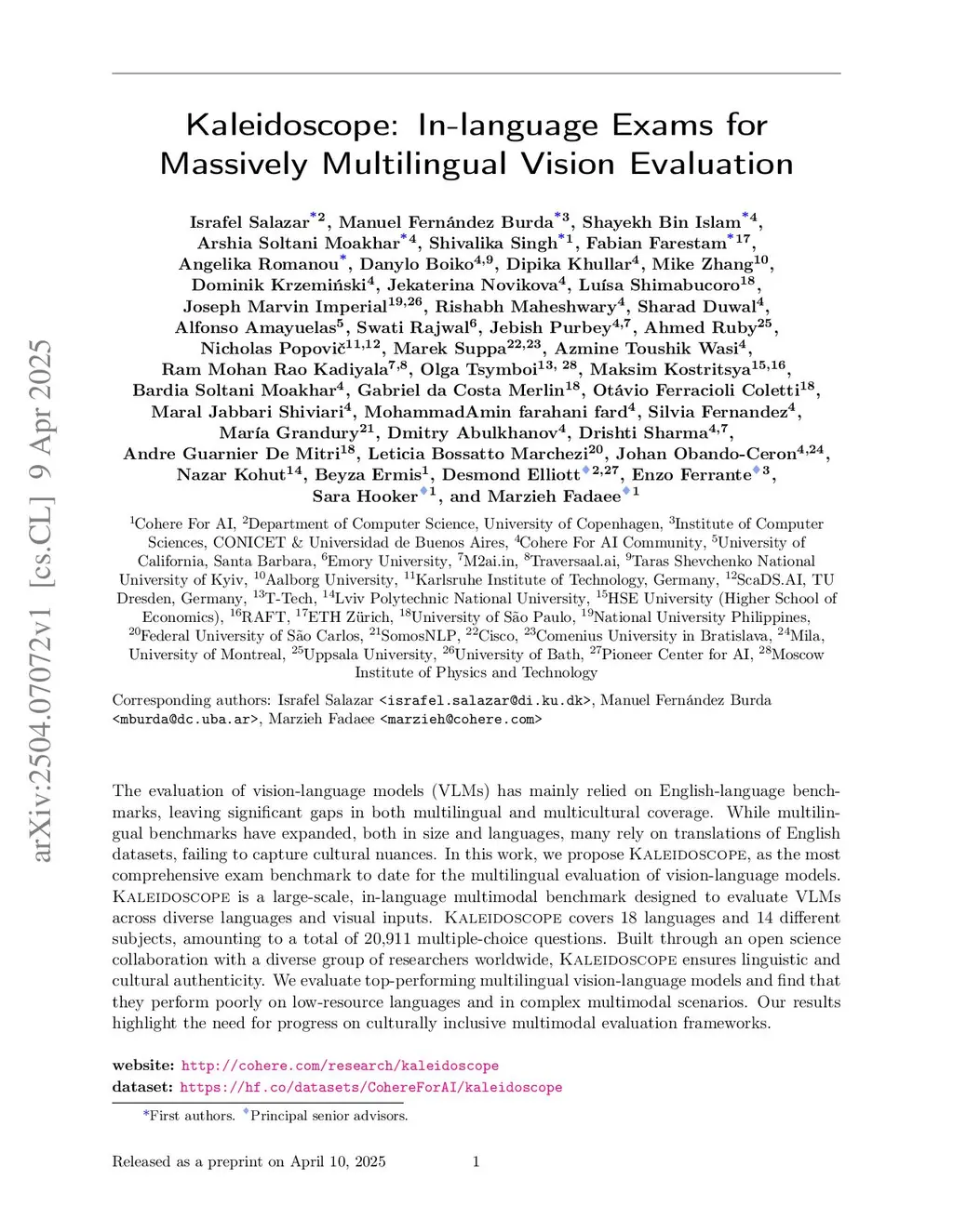 Kaleidoscope: In-language Exams for Massively Multilingual Vision Evaluation