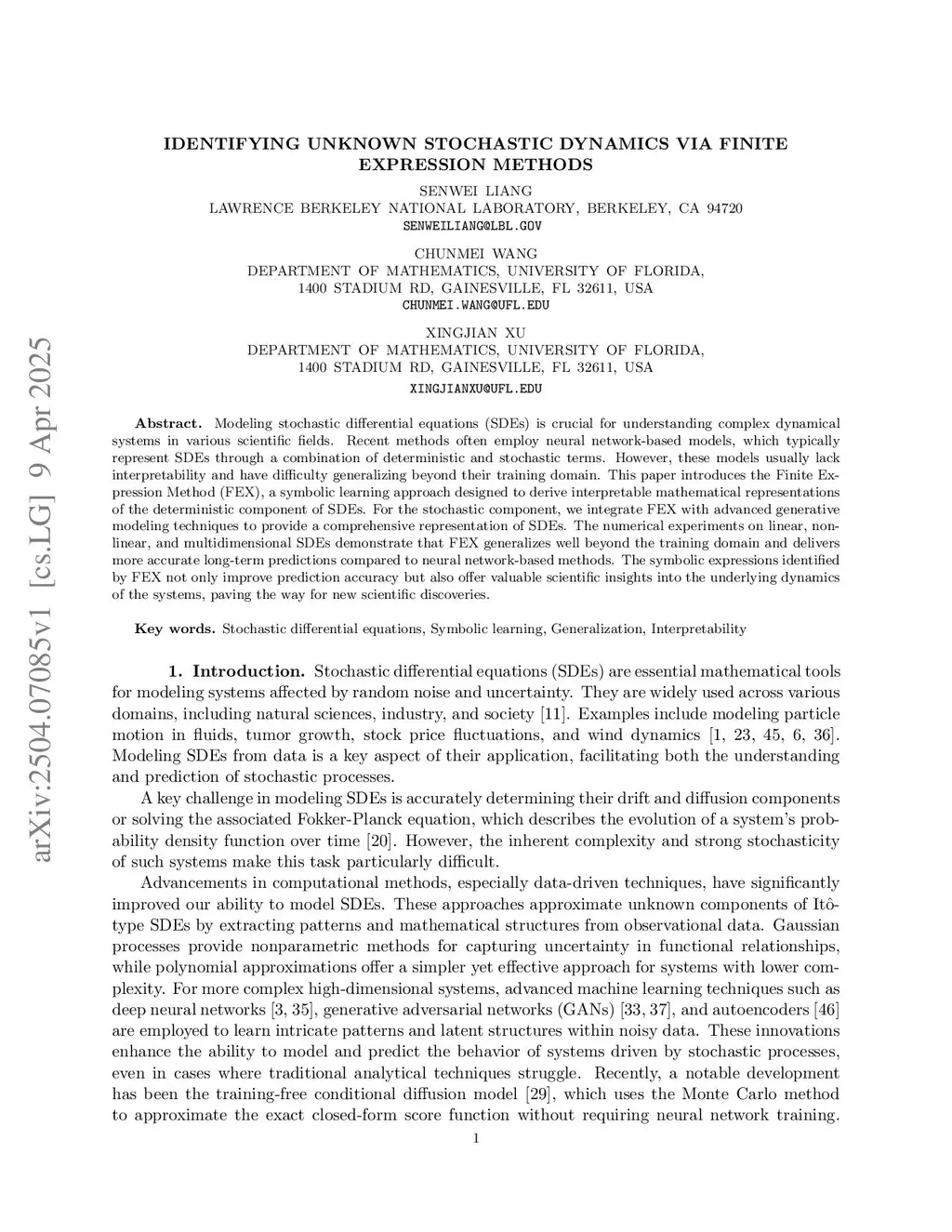 Identifying Unknown Stochastic Dynamics via Finite expression methods
