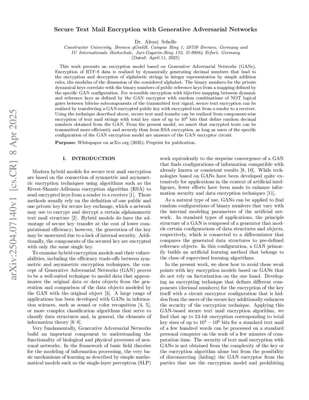 Secure Text Mail Encryption with Generative Adversarial Networks