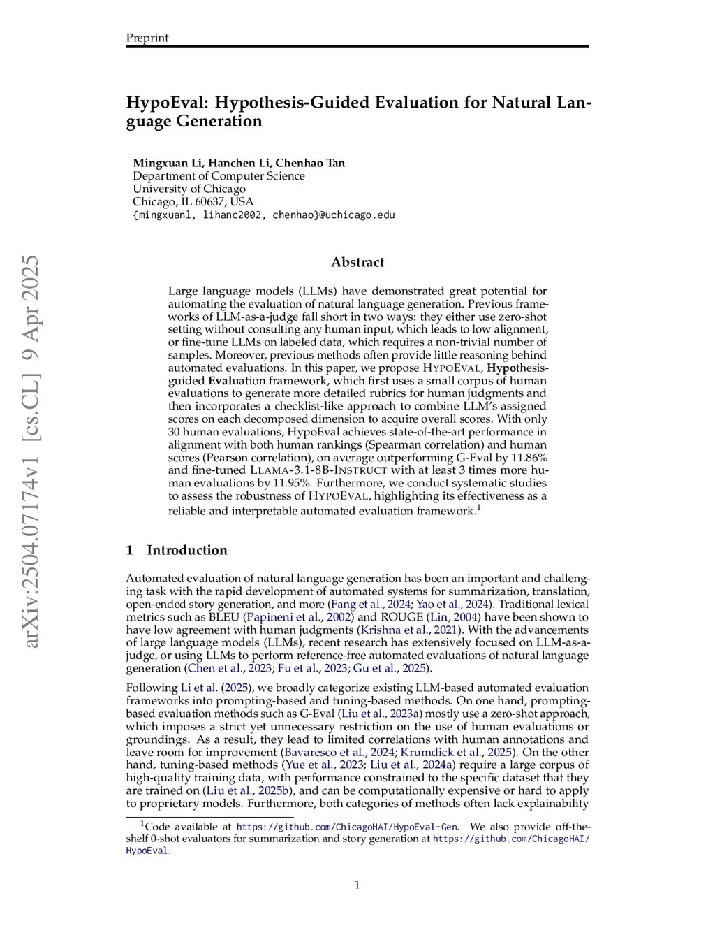 HypoEval: Hypothesis-Guided Evaluation for Natural Language Generation
