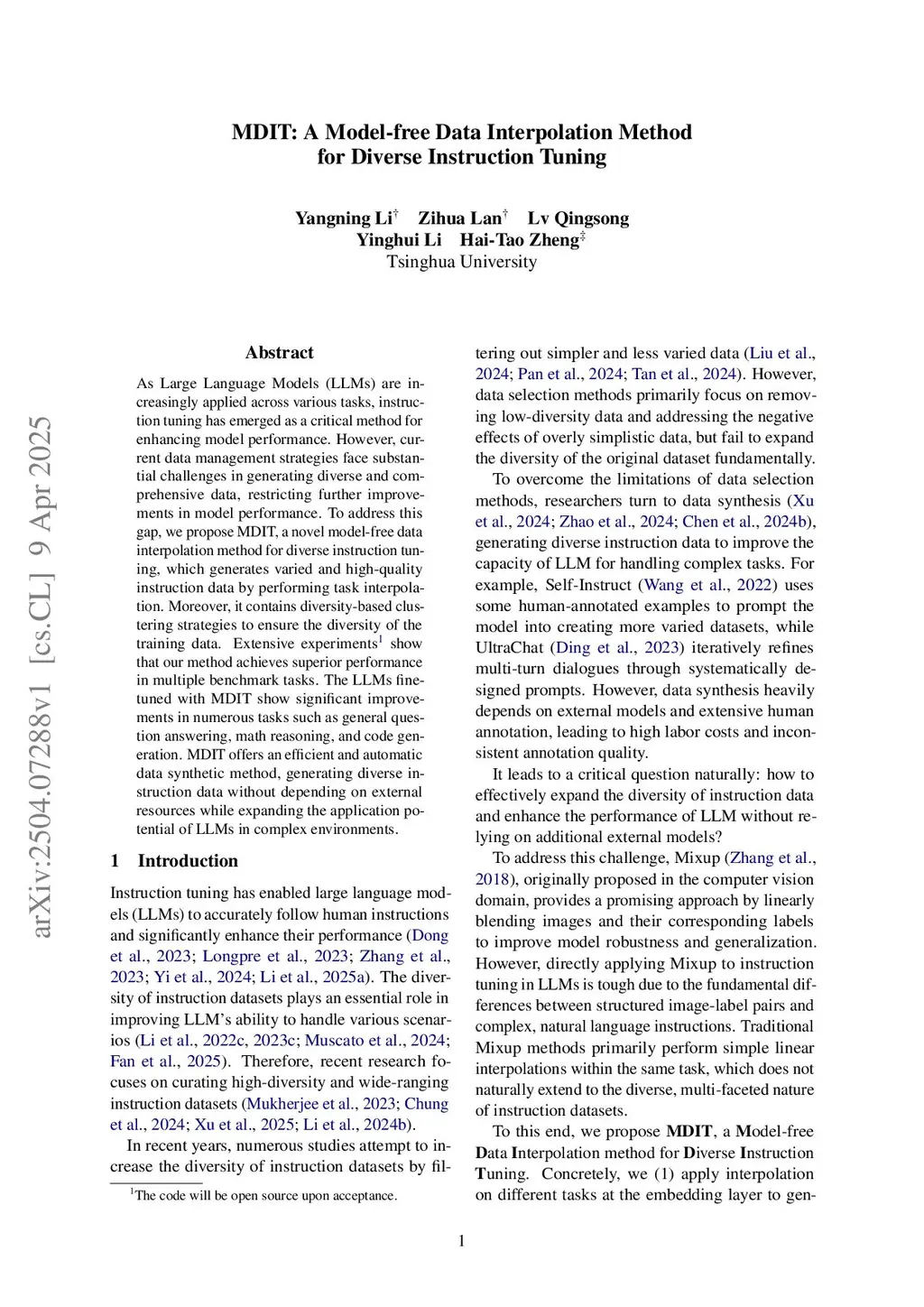 MDIT: A Model-free Data Interpolation Method for Diverse Instruction Tuning