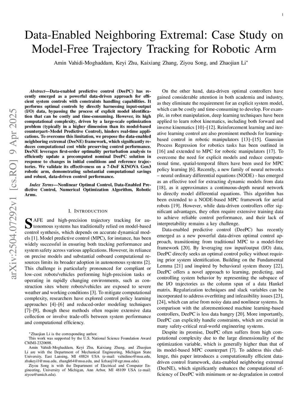 Data-Enabled Neighboring Extremal: Case Study on Model-Free Trajectory Tracking for Robotic Arm