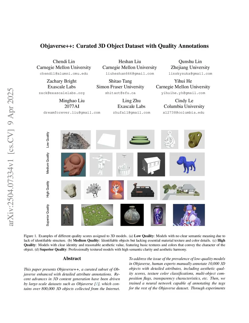 This paper presents Objaverse++, a curated subset of Objaverse enhanced with detailed attribute annotations by human experts. Recent advances in 3D content generation have been driven by large-scale datasets such as Objaverse, which contains over 800,000 3D objects collected from the Internet. Although Objaverse represents the largest available 3D asset collection, its utility is limited by the predominance of low-quality models. To address this limitation, we manually annotate 10,000 3D objects with detailed attributes, including aesthetic quality scores, texture color classifications, multi-object composition flags, transparency characteristics, etc. Then, we trained a neural network capable of annotating the tags for the rest of the Objaverse dataset. Through experiments and a user study on generation results, we demonstrate that models pre-trained on our quality-focused subset achieve better performance than those trained on the larger dataset of Objaverse in image-to-3D generation tasks. In addition, by comparing multiple subsets of training data filtered by our tags, our results show that the higher the data quality, the faster the training loss converges. These findings suggest that careful curation and rich annotation can compensate for the raw dataset size, potentially offering a more efficient path to develop 3D generative models. We release our enhanced dataset of approximately 500,000 curated 3D models to facilitate further research on various downstream tasks in 3D computer vision. In the near future, we aim to extend our annotations to cover the entire Objaverse dataset.