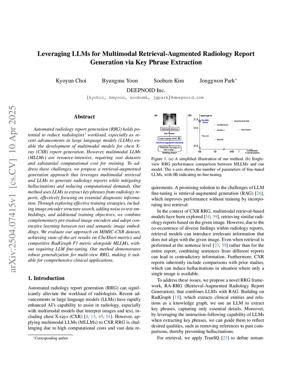 Leveraging LLMs for Multimodal Retrieval-Augmented Radiology Report Generation via Key Phrase Extraction