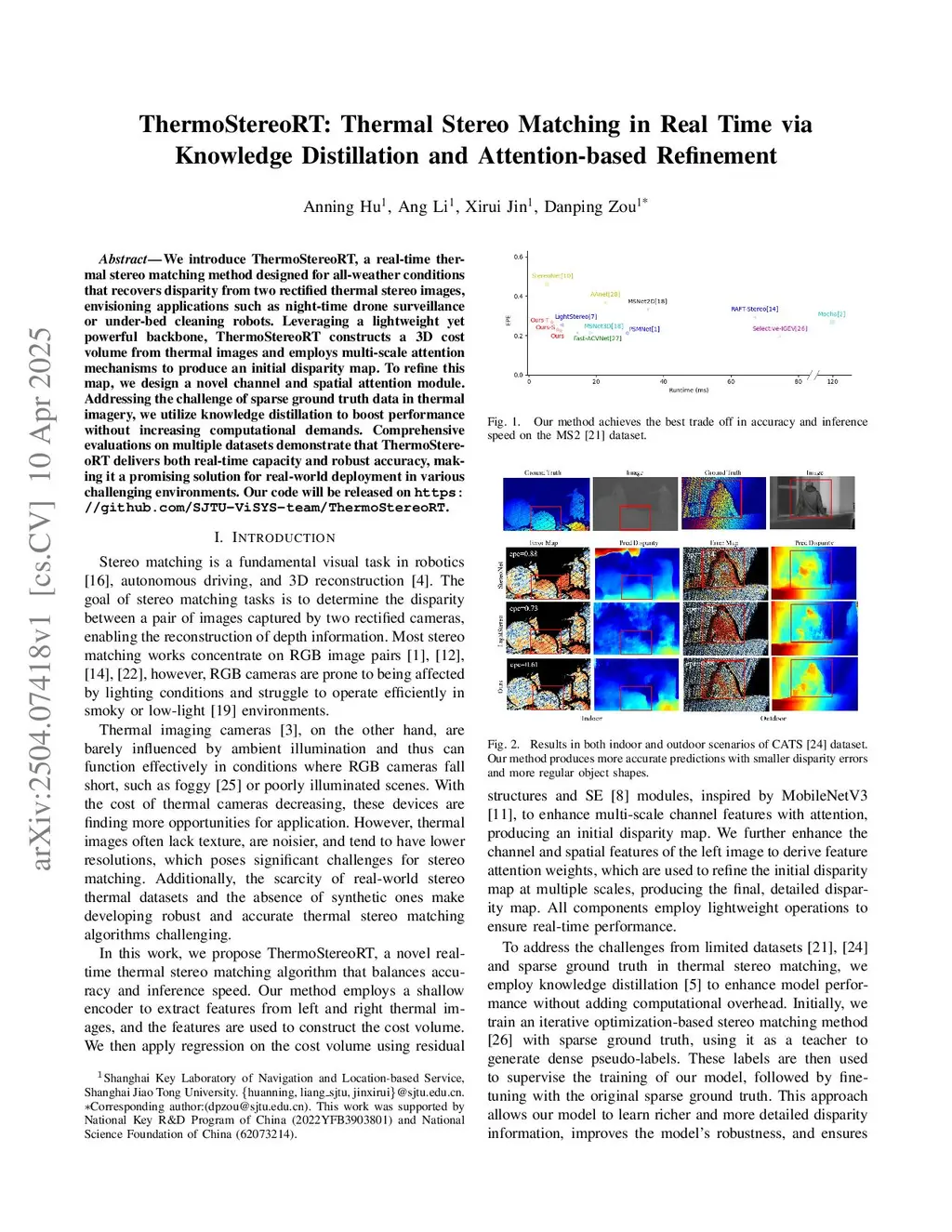 ThermoStereoRT: Thermal Stereo Matching in Real Time via Knowledge Distillation and Attention-based Refinement