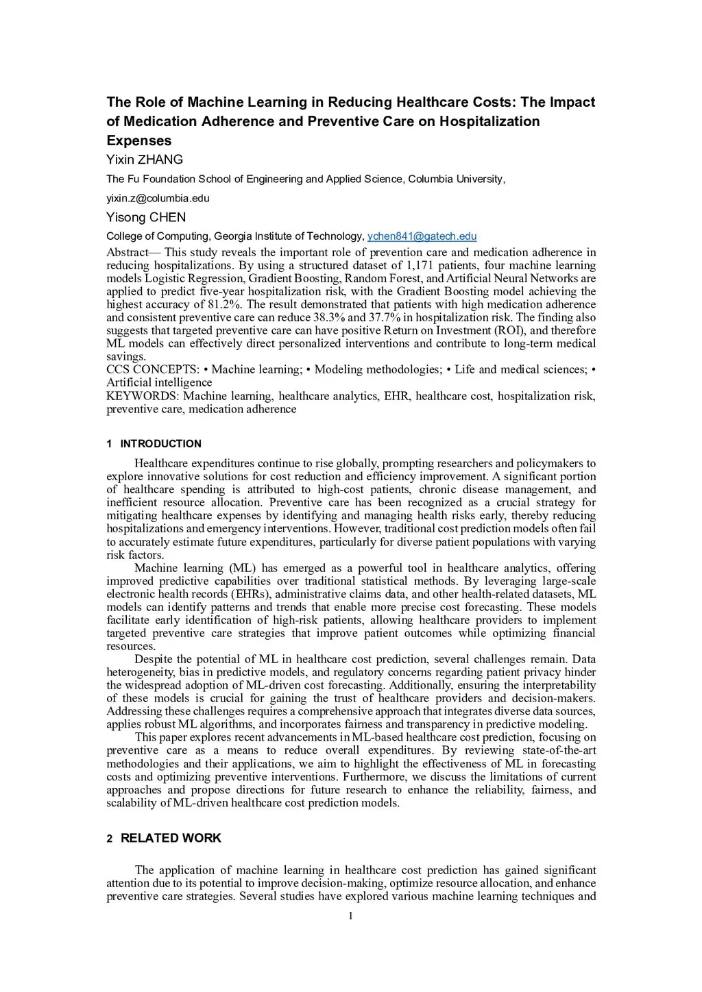 The Role of Machine Learning in Reducing Healthcare Costs: The Impact of Medication Adherence and Preventive Care on Hospitalization Expenses