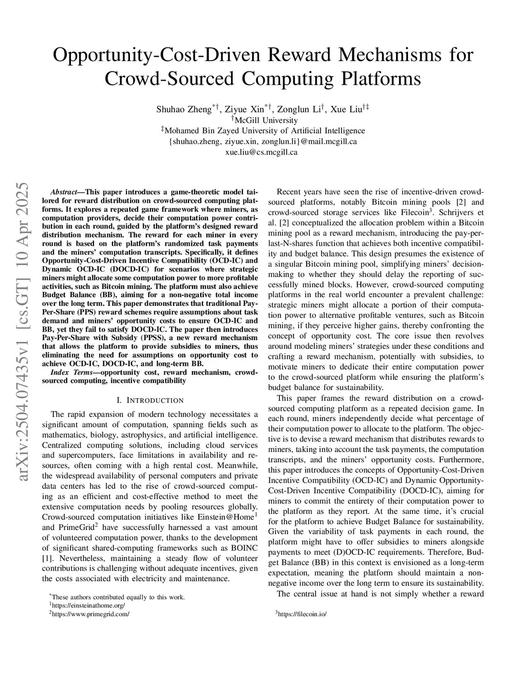 Opportunity-Cost-Driven Reward Mechanisms for Crowd-Sourced Computing Platforms