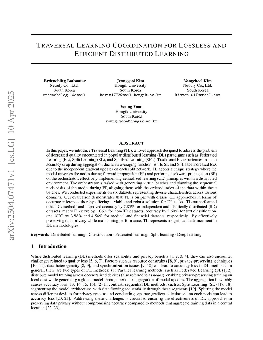Traversal Learning: A Lossless And Efficient Distributed Learning Framework