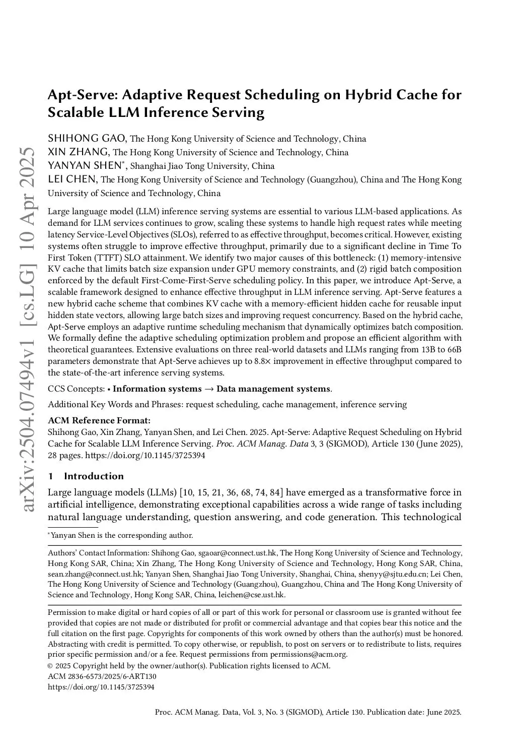 Apt-Serve: Adaptive Request Scheduling on Hybrid Cache for Scalable LLM Inference Serving