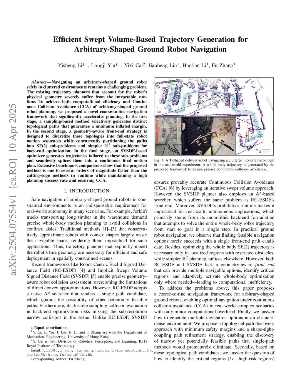Efficient Swept Volume-Based Trajectory Generation for Arbitrary-Shaped Ground Robot Navigation