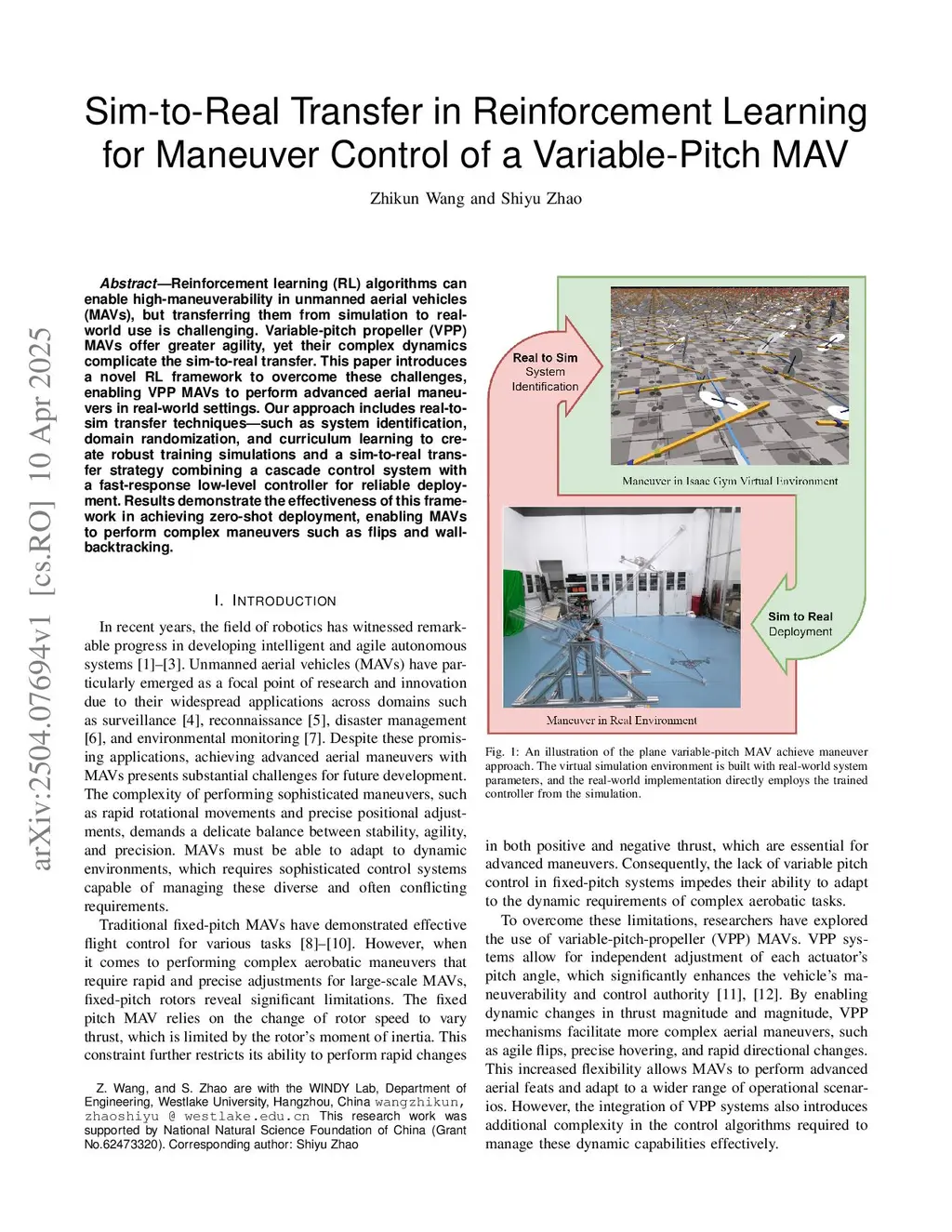 Sim-to-Real Transfer in Reinforcement Learning for Maneuver Control of a Variable-Pitch MAV