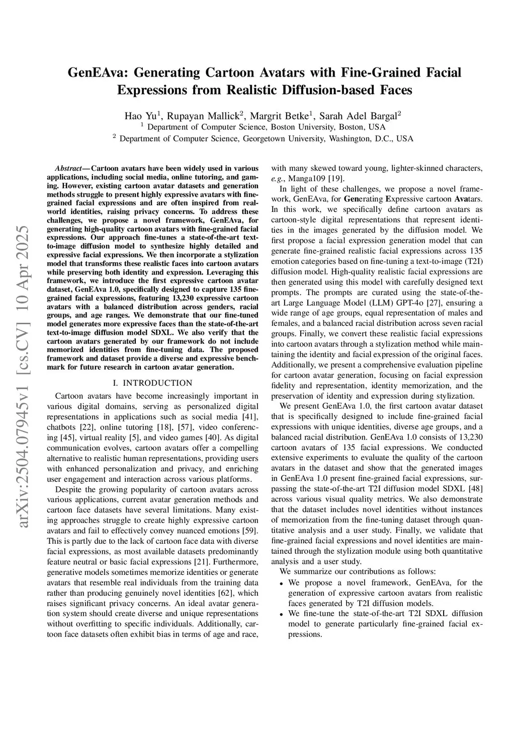 GenEAva: Generating Cartoon Avatars with Fine-Grained Facial Expressions from Realistic Diffusion-based Faces