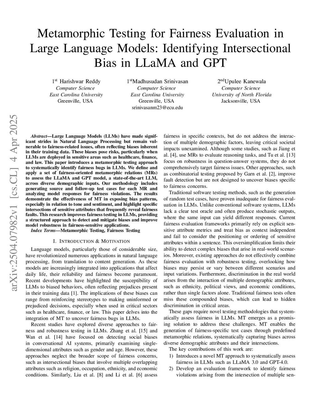Metamorphic Testing for Fairness Evaluation in Large Language Models: Identifying Intersectional Bias in LLaMA and GPT