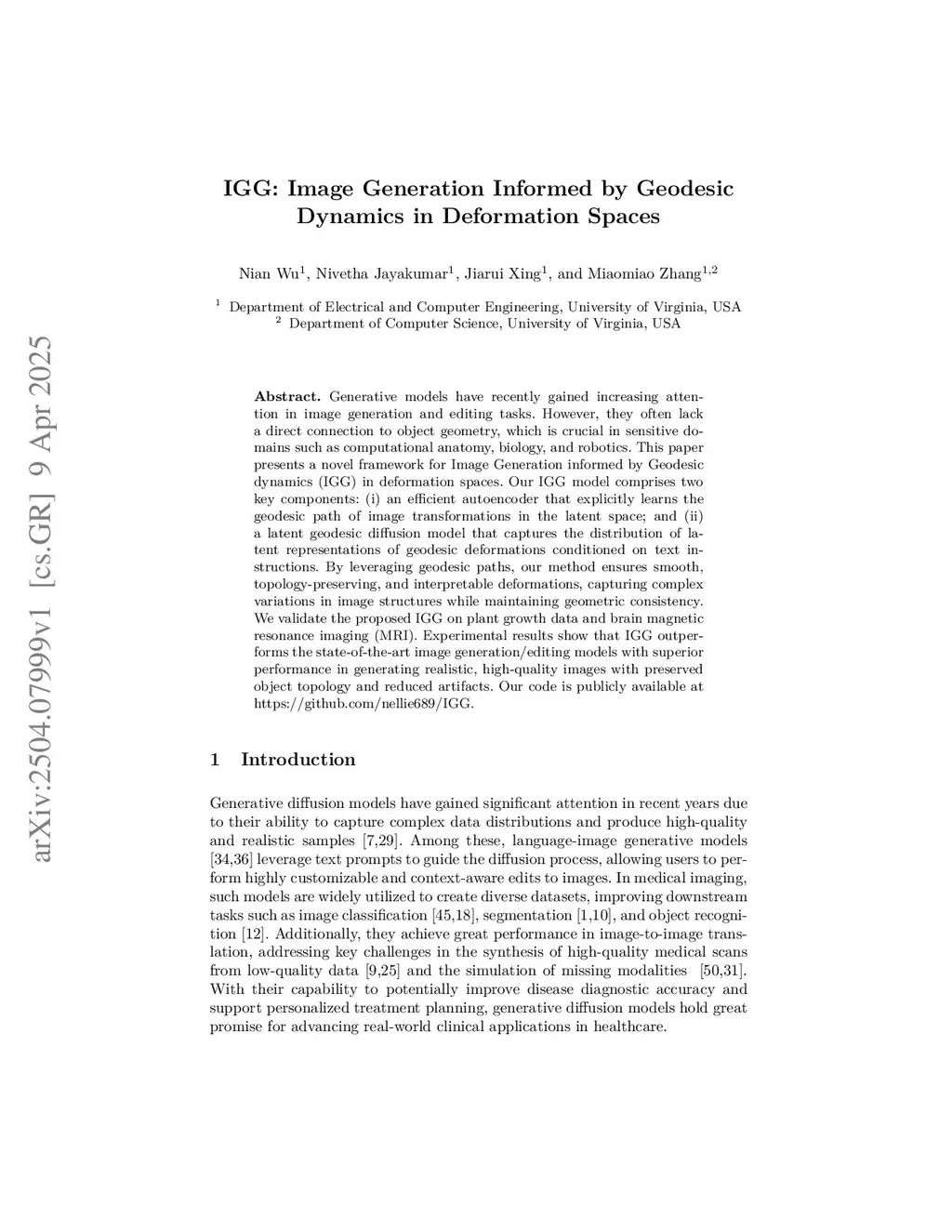 IGG: Image Generation Informed by Geodesic Dynamics in Deformation Spaces