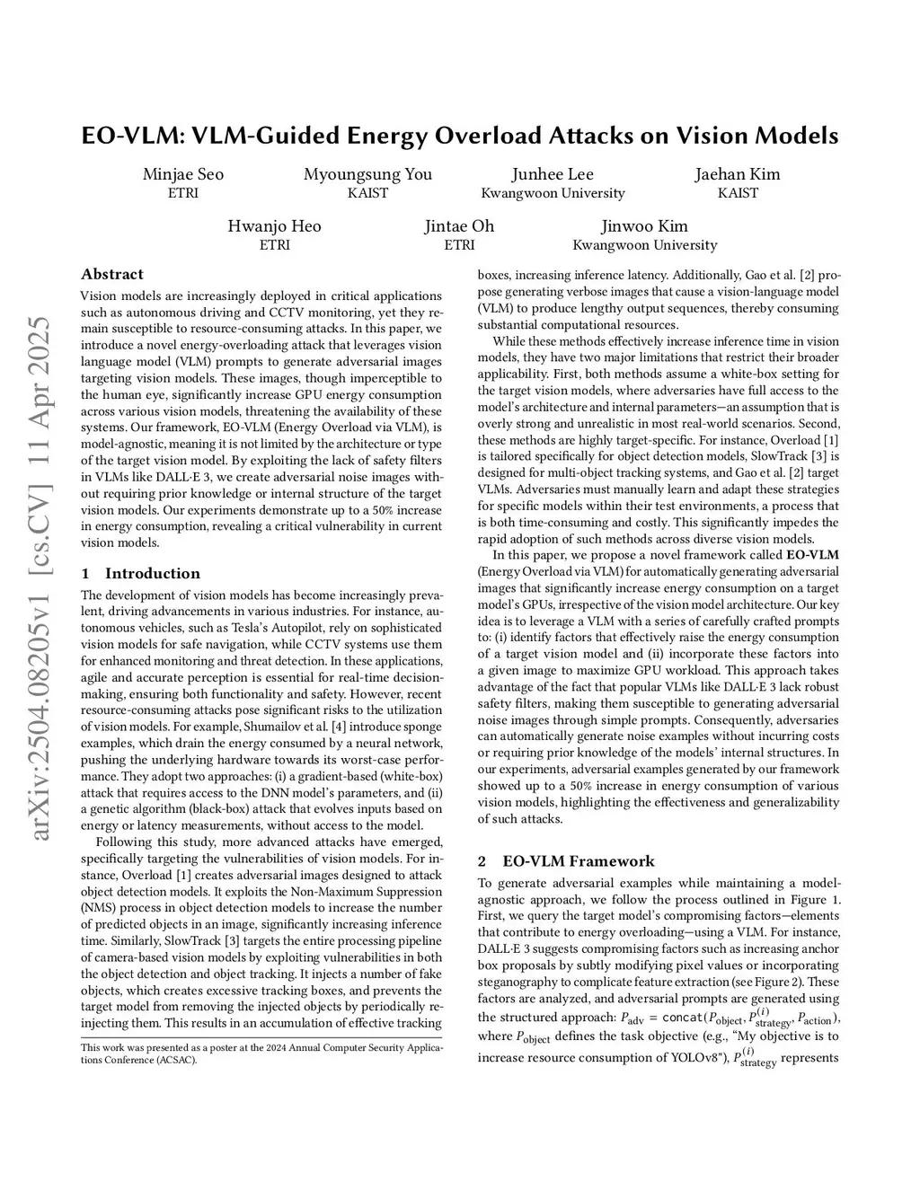 Vision models are increasingly deployed in critical applications such as autonomous driving and CCTV monitoring, yet they remain susceptible to resource-consuming attacks. In this paper, we introduce a novel energy-overloading attack that leverages vision language model (VLM) prompts to generate adversarial images targeting vision models. These images, though imperceptible to the human eye, significantly increase GPU energy consumption across various vision models, threatening the availability of these systems. Our framework, EO-VLM (Energy Overload via VLM), is model-agnostic, meaning it is not limited by the architecture or type of the target vision model. By exploiting the lack of safety filters in VLMs like DALL-E 3, we create adversarial noise images without requiring prior knowledge or internal structure of the target vision models. Our experiments demonstrate up to a 50% increase in energy consumption, revealing a critical vulnerability in current vision models.