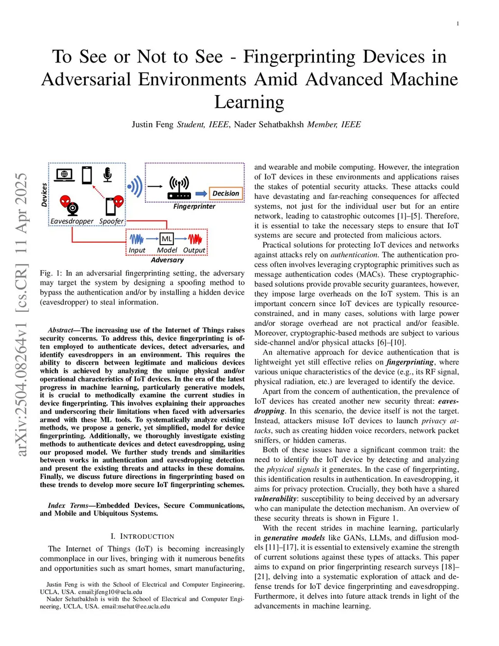 To See or Not to See -- Fingerprinting Devices in Adversarial Environments Amid Advanced Machine Learning