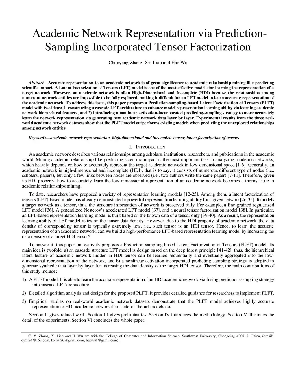 Academic Network Representation via Prediction-Sampling Incorporated Tensor Factorization