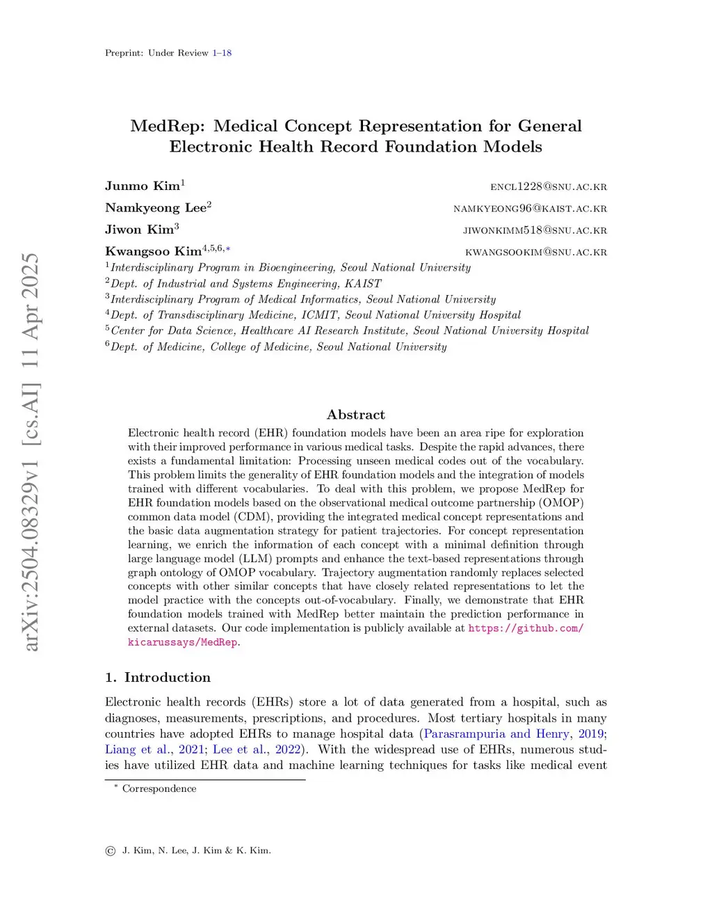MedRep: Medical Concept Representation for General Electronic Health Record Foundation Models
