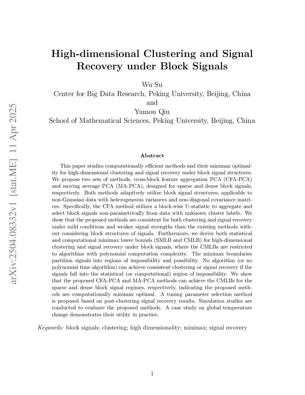 High-dimensional Clustering and Signal Recovery under Block Signals