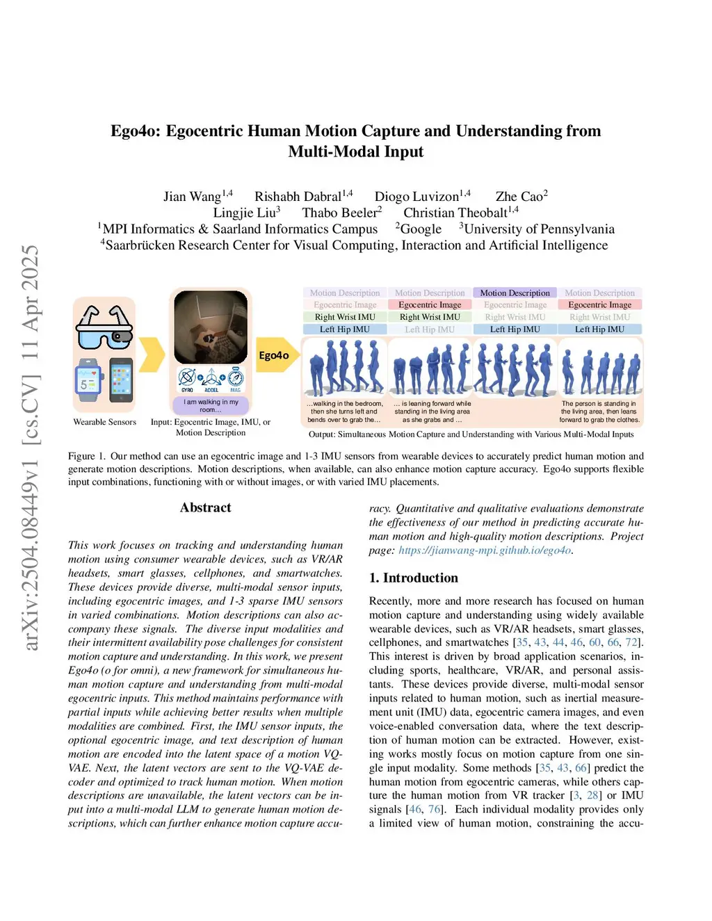 Ego4o: Egocentric Human Motion Capture and Understanding from Multi-Modal Input