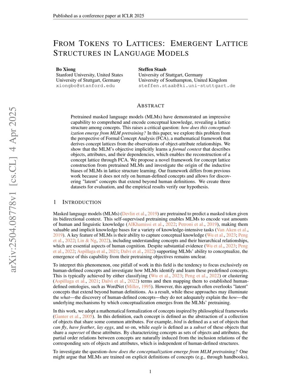 From Tokens to Lattices: Emergent Lattice Structures in Language Models