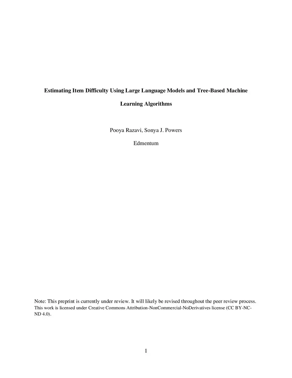 Estimating Item Difficulty Using Large Language Models and Tree-Based Machine Learning Algorithms