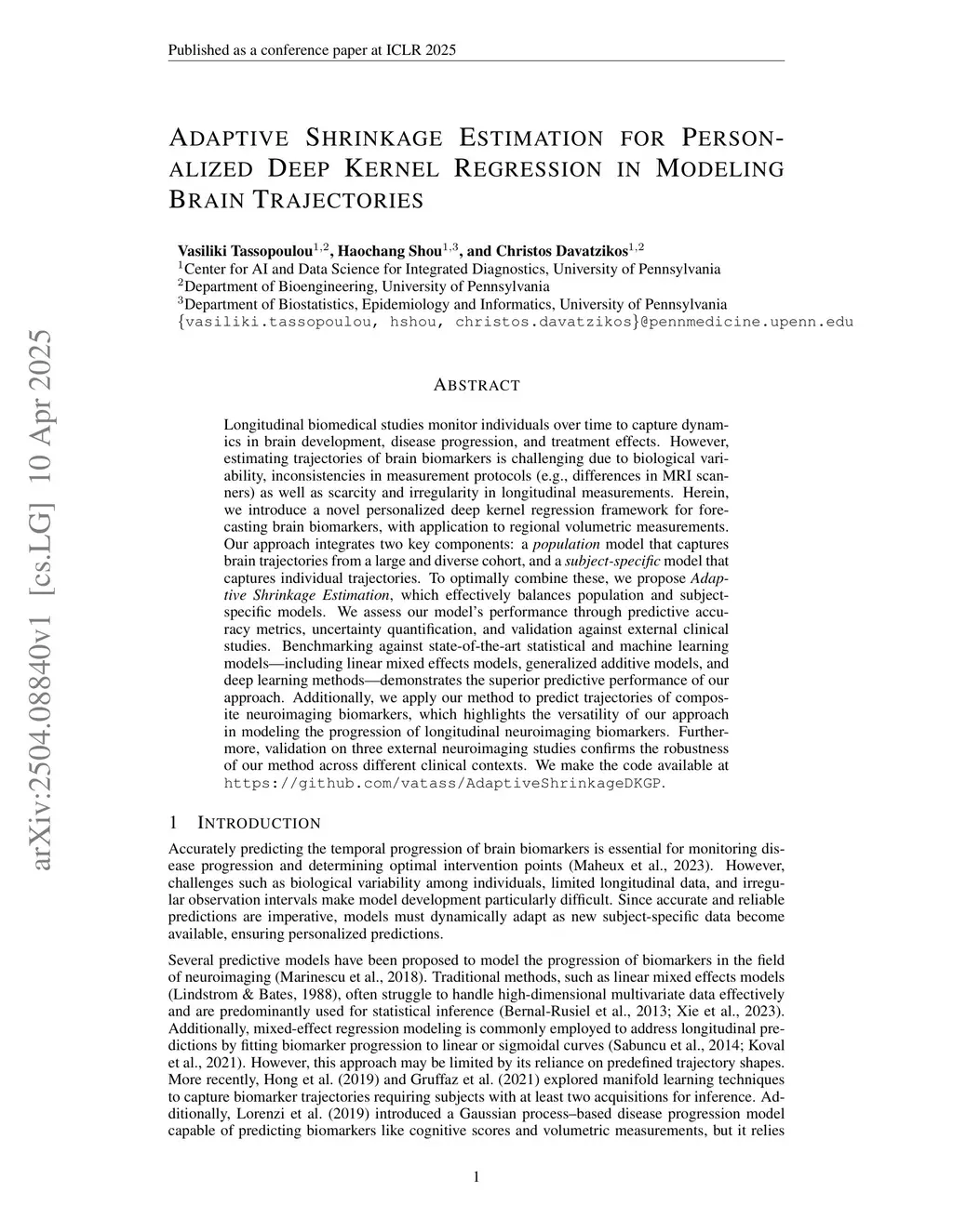 Adaptive Shrinkage Estimation For Personalized Deep Kernel Regression In Modeling Brain Trajectories