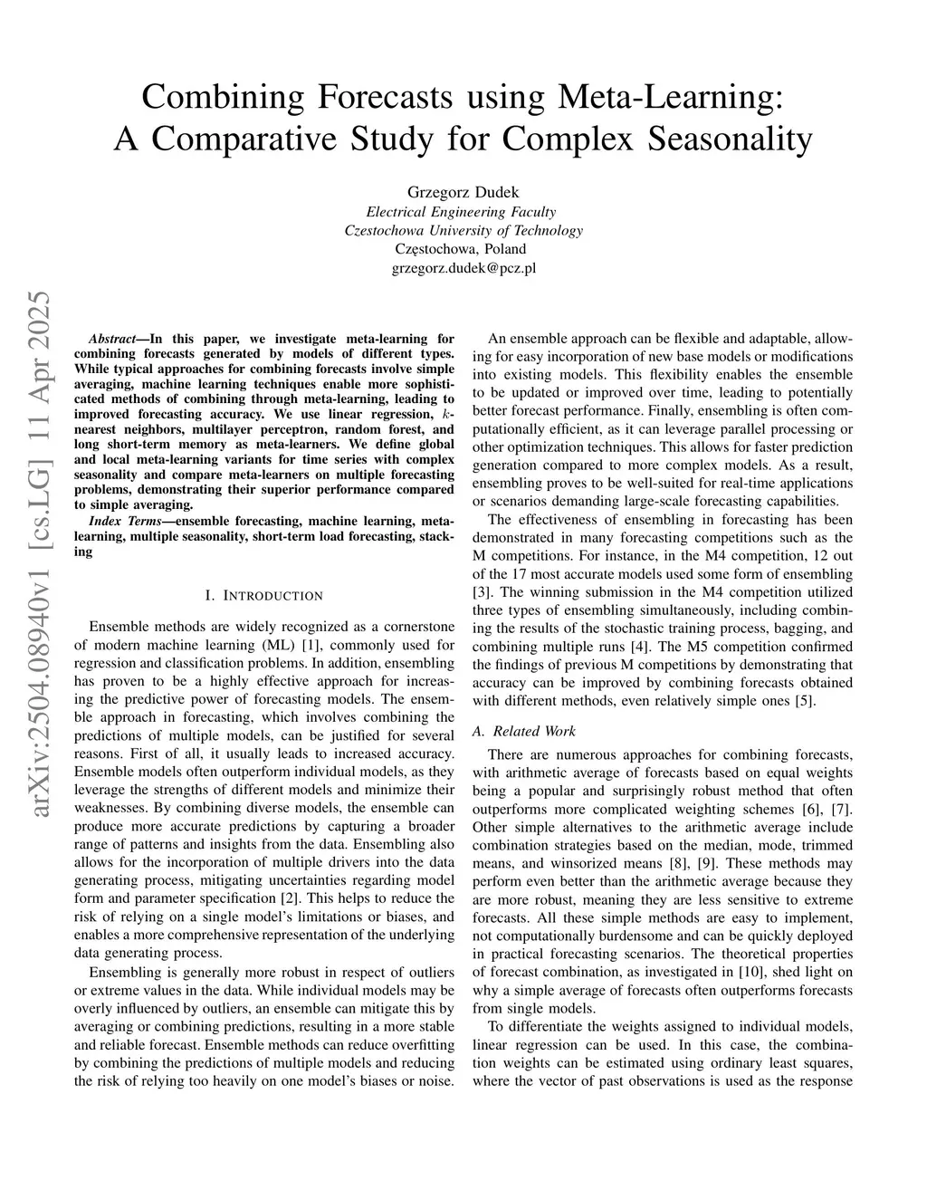 Combining Forecasts using Meta-Learning: A Comparative Study for Complex Seasonality