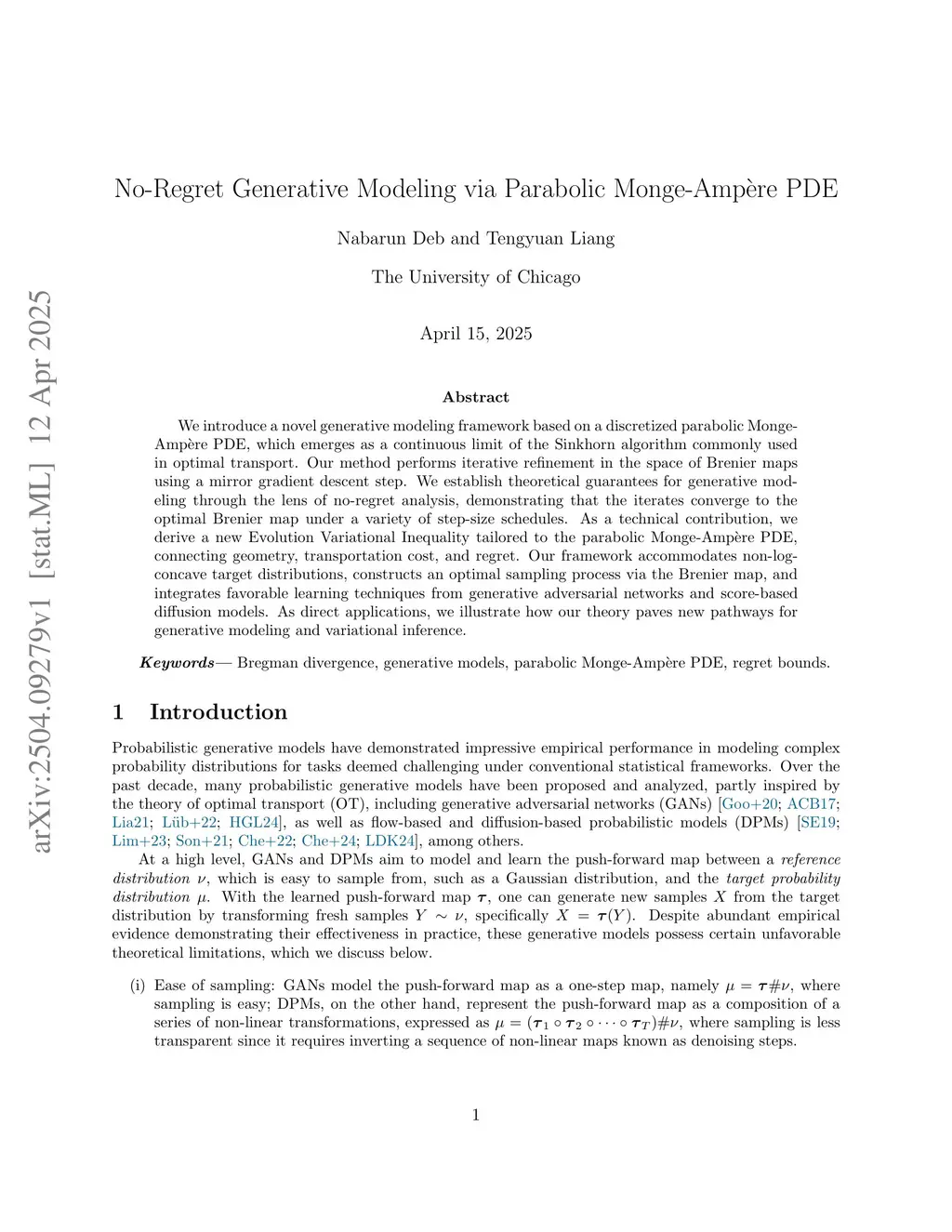No-Regret Generative Modeling via Parabolic Monge-Ampère PDE