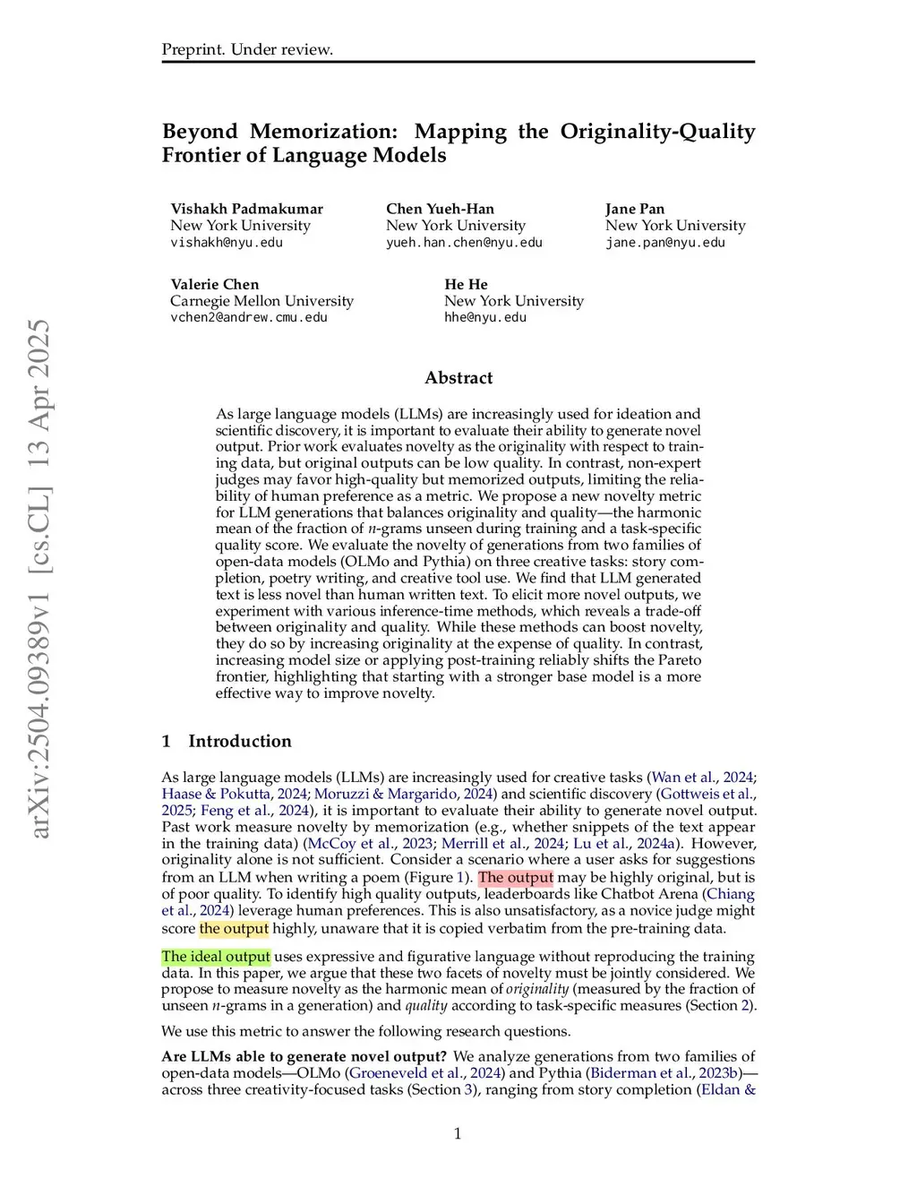 Measuring LLM Novelty As The Frontier Of Original And High-Quality Output