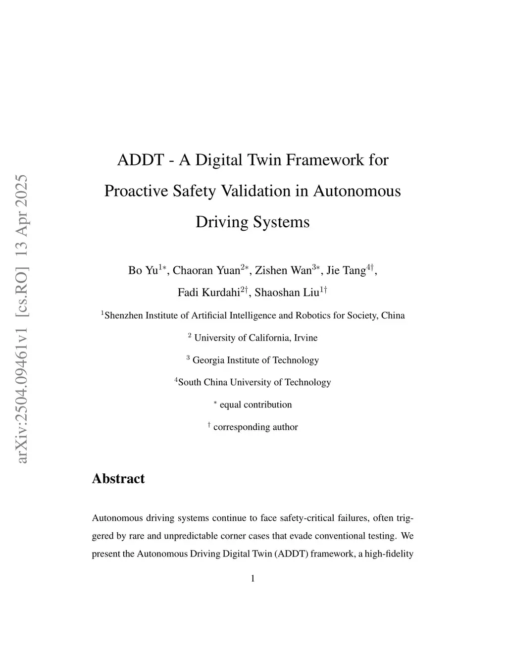Autonomous driving systems continue to face safety-critical failures, often triggered by rare and unpredictable corner cases that evade conventional testing. We present the Autonomous Driving Digital Twin (ADDT) framework, a high-fidelity simulation platform designed to proactively identify hidden faults, evaluate real-time performance, and validate safety before deployment. ADDT combines realistic digital models of driving environments, vehicle dynamics, sensor behavior, and fault conditions to enable scalable, scenario-rich stress-testing under diverse and adverse conditions. It supports adaptive exploration of edge cases using reinforcement-driven techniques, uncovering failure modes that physical road testing often misses. By shifting from reactive debugging to proactive simulation-driven validation, ADDT enables a more rigorous and transparent approach to autonomous vehicle safety engineering. To accelerate adoption and facilitate industry-wide safety improvements, the entire ADDT framework has been released as open-source software, providing developers with an accessible and extensible tool for comprehensive safety testing at scale.