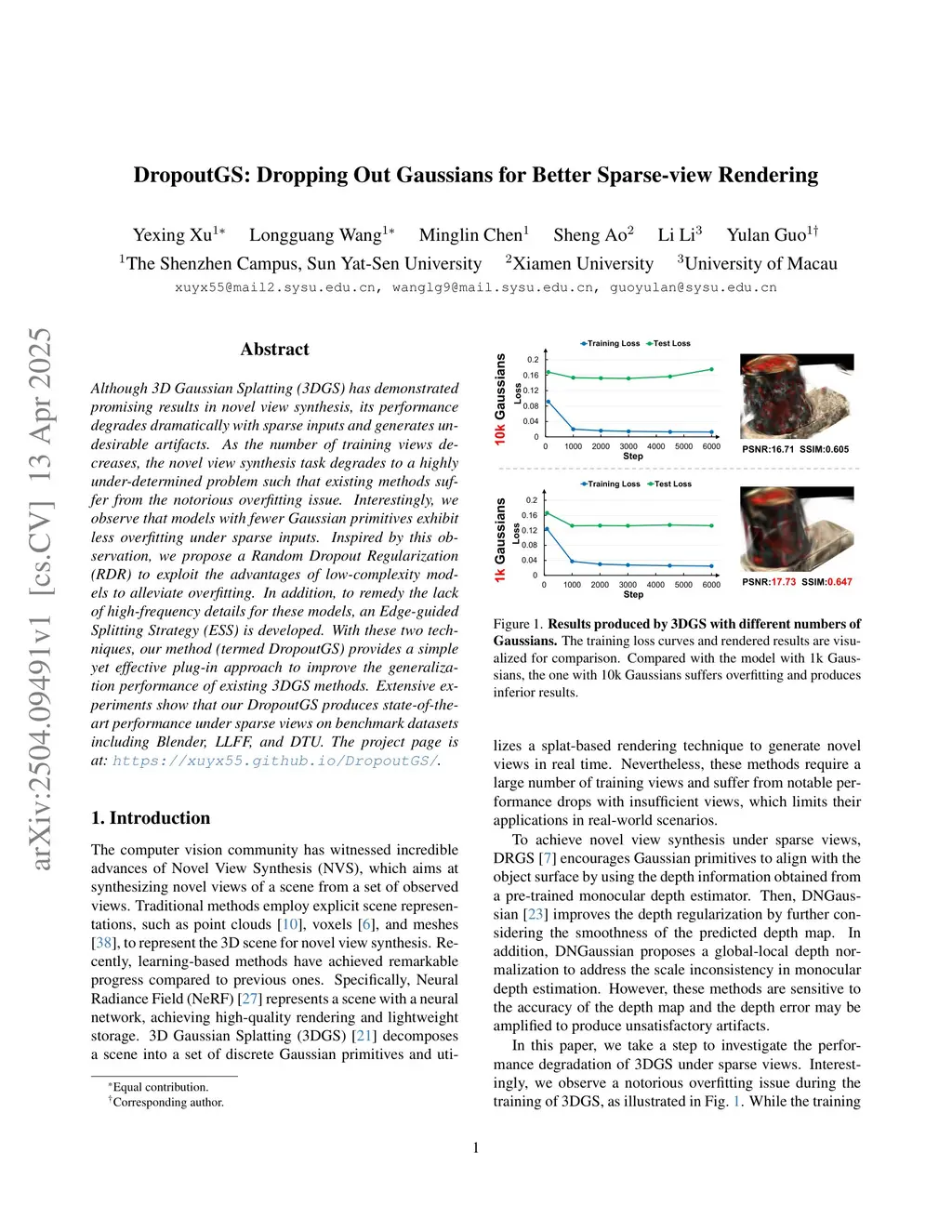 DropoutGS: Dropping Out Gaussians for Better Sparse-view Rendering