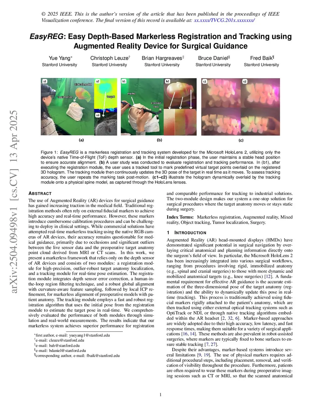 EasyREG: Easy Depth-Based Markerless Registration and Tracking using Augmented Reality Device for Surgical Guidance