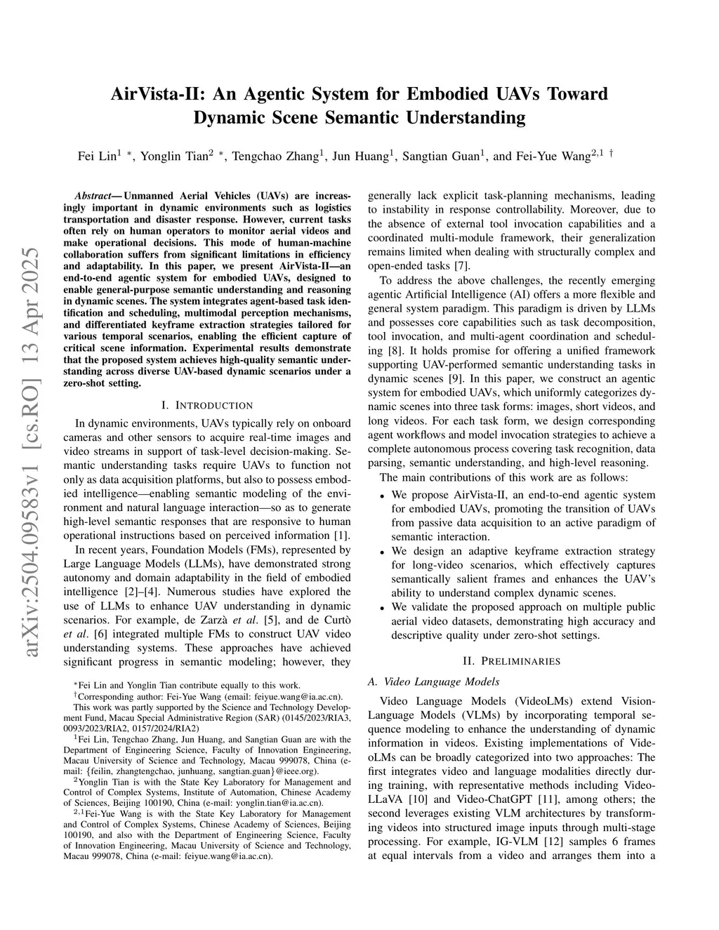 Unmanned Aerial Vehicles (UAVs) are increasingly important in dynamic environments such as logistics transportation and disaster response. However, current tasks often rely on human operators to monitor aerial videos and make operational decisions. This mode of human-machine collaboration suffers from significant limitations in efficiency and adaptability. In this paper, we present AirVista-II -- an end-to-end agentic system for embodied UAVs, designed to enable general-purpose semantic understanding and reasoning in dynamic scenes. The system integrates agent-based task identification and scheduling, multimodal perception mechanisms, and differentiated keyframe extraction strategies tailored for various temporal scenarios, enabling the efficient capture of critical scene information. Experimental results demonstrate that the proposed system achieves high-quality semantic understanding across diverse UAV-based dynamic scenarios under a zero-shot setting.