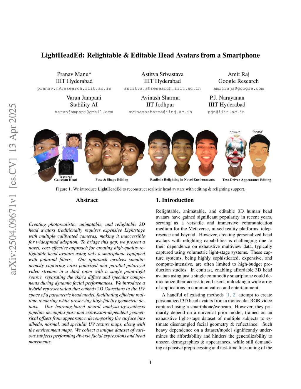 LightHeadEd: Relightable & Editable Head Avatars from a Smartphone
