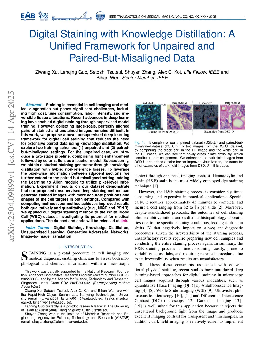 Digital Staining with Knowledge Distillation: A Unified Framework for Unpaired and Paired-But-Misaligned Data