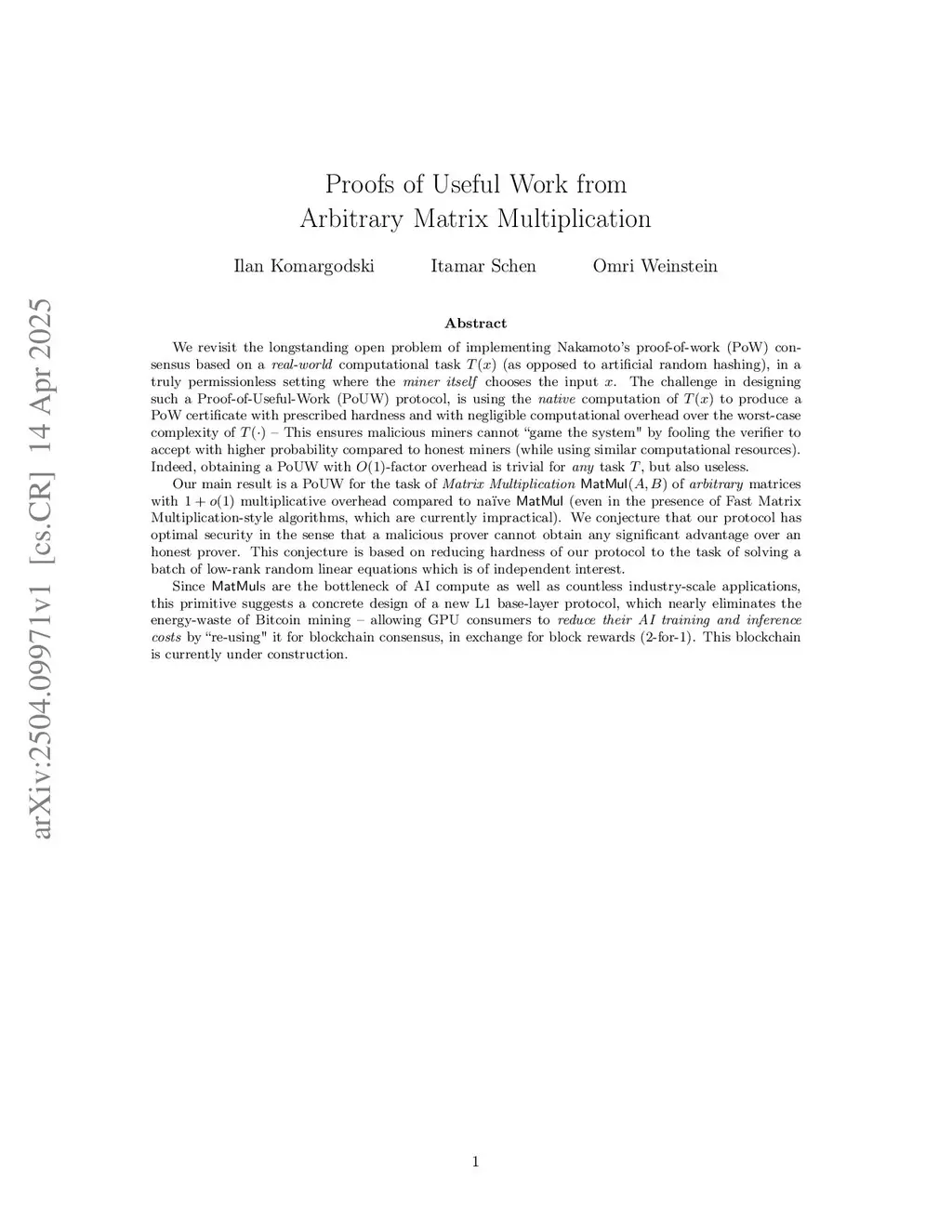 Proofs of Useful Work from Arbitrary Matrix Multiplication