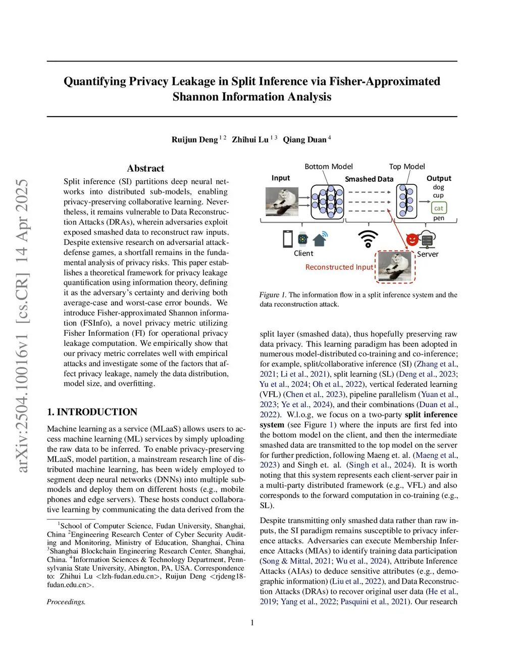 Quantifying Privacy Leakage in Split Inference via Fisher-Approximated Shannon Information Analysis