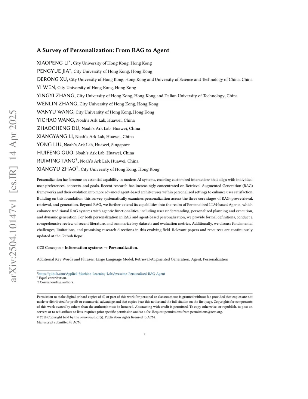 A Survey of Personalization: From RAG to Agent