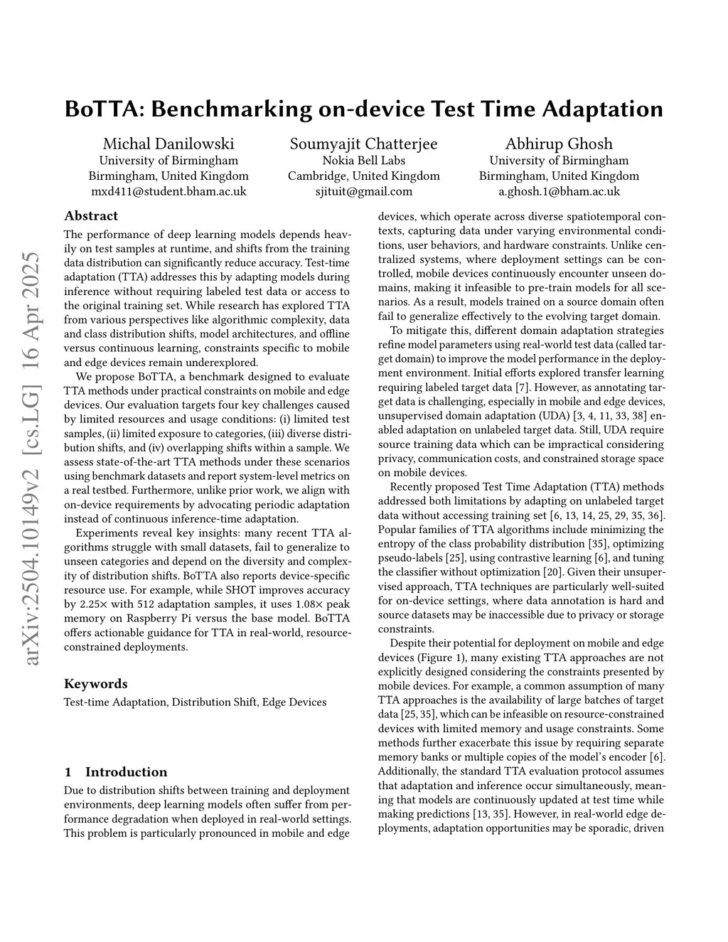 BoTTA: Benchmarking on-device Test Time Adaptation