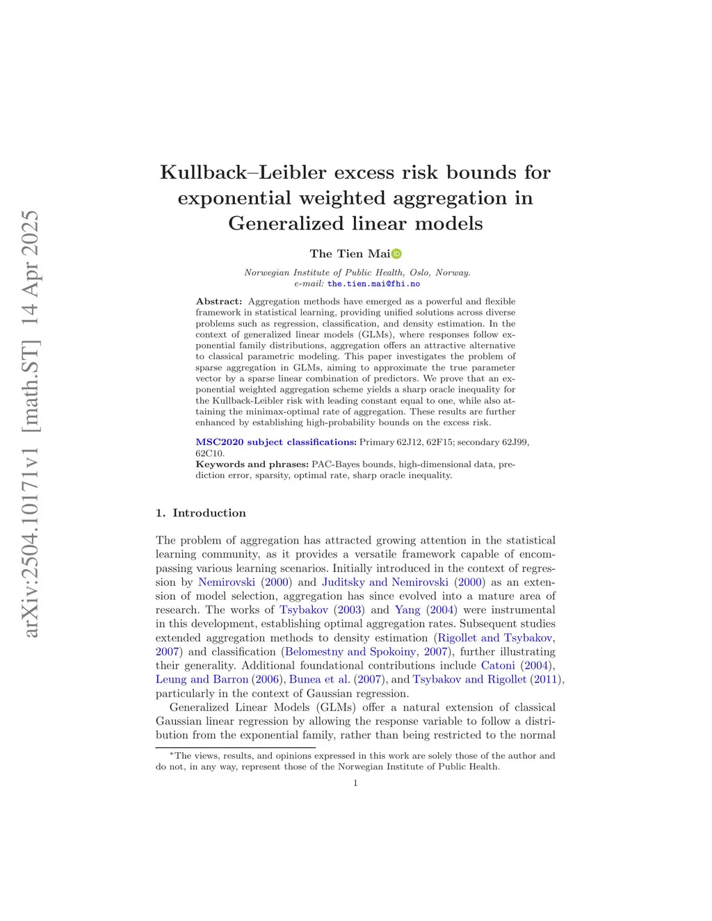 Kullback-Leibler excess risk bounds for exponential weighted aggregation in Generalized linear models