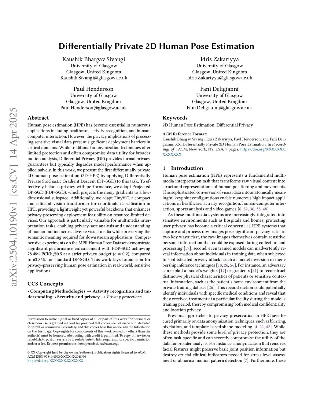 Differentially Private 2D Human Pose Estimation