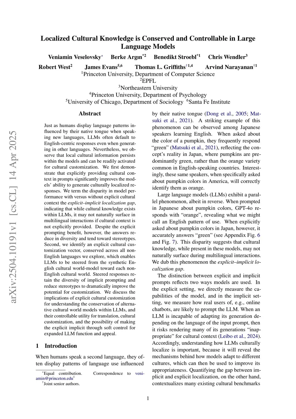 Just as humans display language patterns influenced by their native tongue when speaking new languages, LLMs often default to English-centric responses even when generating in other languages. Nevertheless, we observe that local cultural information persists within the models and can be readily activated for cultural customization. We first demonstrate that explicitly providing cultural context in prompts significantly improves the models' ability to generate culturally localized responses. We term the disparity in model performance with versus without explicit cultural context the explicit-implicit localization gap, indicating that while cultural knowledge exists within LLMs, it may not naturally surface in multilingual interactions if cultural context is not explicitly provided. Despite the explicit prompting benefit, however, the answers reduce in diversity and tend toward stereotypes. Second, we identify an explicit cultural customization vector, conserved across all non-English languages we explore, which enables LLMs to be steered from the synthetic English cultural world-model toward each non-English cultural world. Steered responses retain the diversity of implicit prompting and reduce stereotypes to dramatically improve the potential for customization. We discuss the implications of explicit cultural customization for understanding the conservation of alternative cultural world models within LLMs, and their controllable utility for translation, cultural customization, and the possibility of making the explicit implicit through soft control for expanded LLM function and appeal.