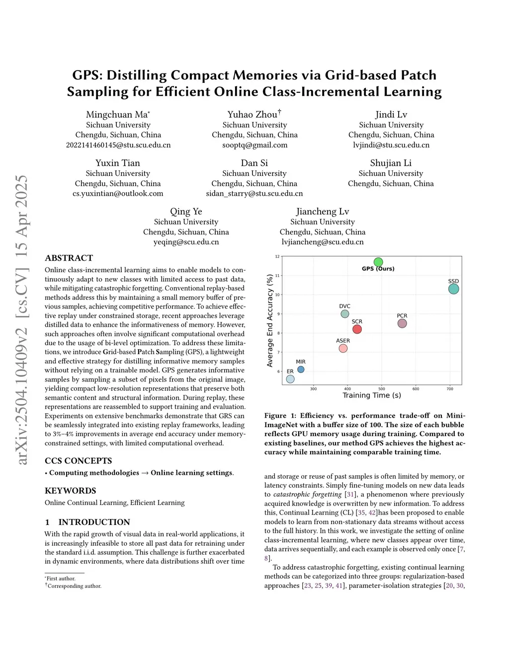 GPS: Distilling Compact Memories via Grid-based Patch Sampling for Efficient Online Class-Incremental Learning